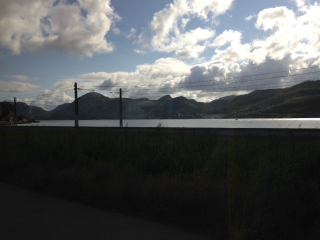 After lunch and more packing, I got a call from Marta, with an invitation to dinner later in the day with the Dahls. We took the X60 bus, which Anya has taken before, but I haven’t. She calls it “Stavanger in a Nutshell,” because you see many different views of this area: farmland with some sheep and cows, vistas with mountains, the university (where I took a philosophy of science course), the Forus petroleum business center, a shopping mall, different kinds of residential areas, and eventually the Stavanger city center (though we got off earlier).