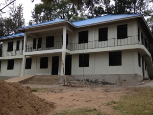 After morning prayer, the students line up for announcements.After morning prayer, I walked past the new administration building that is under construction.