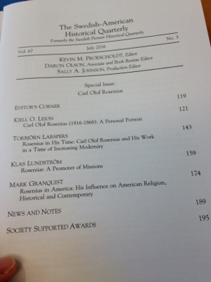 The July 2016 issue features articles by several of my colleagues. This year is the 200th anniversary of the birth of Carl Olof Rosenius (February 3, 1816 – February 24, 1868), an important theologian in Sweden. He was part of the Swedish revival movement and played an important role in the founding of the Swedish Evangelical Mission, which owns Johannelund. So, he’s a huge figure around here. (Pam, Rich may be interested in this.)